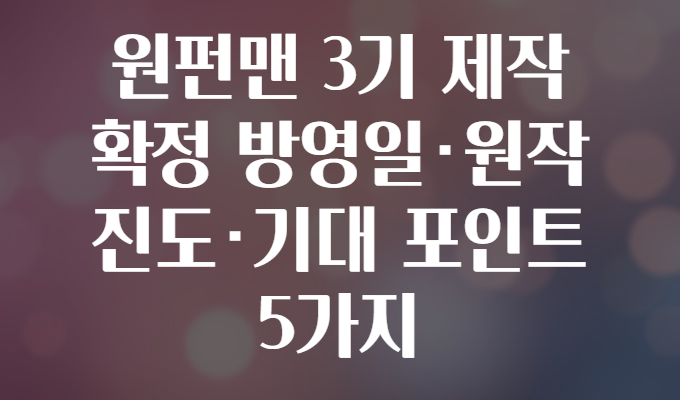 - โ 2024๋ ํ์ฌ, ๊ณต์ ๋ฐํ๋ฅผ ํตํด ์ํ๋งจ(One Punch Man) 3๊ธฐ ์ ์ ํ์ ์์์ด ์ ๋ฌ๋จ