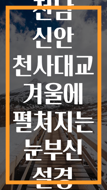 ๊ฒจ์ธ์ด ์ฐพ์์ค๋ฉด, ์ ๋จ ์ ์์ ์ฒ์ฌ๋๊ต๋ ๋ง์น ๋ํ ์์ ํ ์ฅ๋ฉด์ฒ๋ผ ์๋ฆ๋ค์ด ์ค๊ฒฝ์ ์ ์ฌํฉ๋๋ค. ์ด๊ณณ์ ๋ฐ๋ค ์์ ์ฐ๋ ์ ์๋ ๊ณ ์ ํ ๊ตฌ์กฐ๋ฌผ๋ก, ์ฃผ๋ณ์ ์์ฐ ๊ฒฝ๊ด๊ณผ ์ด์ฐ๋ฌ์ ธ ๊ทธ ๊ฒฝ์ด๋ก์์ ๋ํฉ๋๋ค. ์ฐจ๊ฐ์ด ๋ฐ๋๊ณผ ํจ๊ป ํฐ ๋์ผ๋ก ๋ฎ์ธ ํ๊ฒฝ์ ๊ทธ ์ด๋ค ๊ทธ๋ฆผ๋ณด๋ค๋ ์๋ฆ๋ค์ ๋ฐฉ๋ฌธ๊ฐ๋ค์ ๋ง์์ ์ฌ๋ก์ก์ต๋๋ค. ํนํ, ์ค๊ฒฝ์ด ํผ์ณ์ง ๋์ ์ฒ์ฌ๋๊ต๋ ๋จ์ํ ๊ต๋์ ๋์ด, ํ๋์ ์์ ์ํ์ฒ๋ผ ๋ณด์