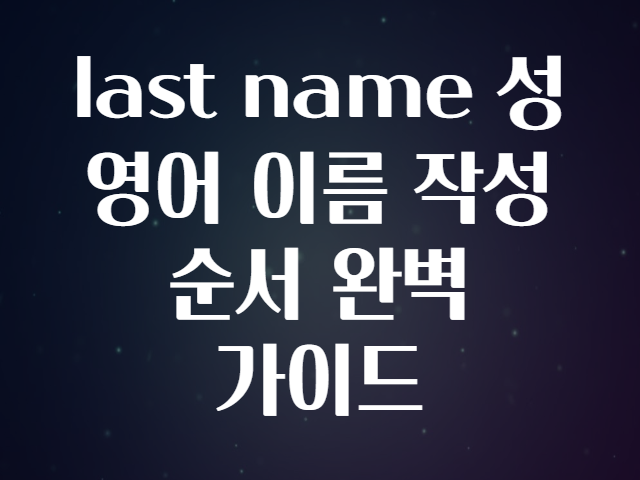 μ€λμ μμ΄ μ΄λ¦ μμ± μ ‘Last Name(μ±) μμ΄ μ΄λ¦ μμ± μμ’λ₯Ό μλ²½νκ² μ΄ν΄νκ³ νλͺ νκ² νμ©νλ λ²μ λ€λ€λ³΄κ³ μ ν©λλ€!